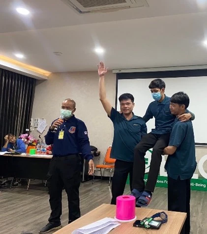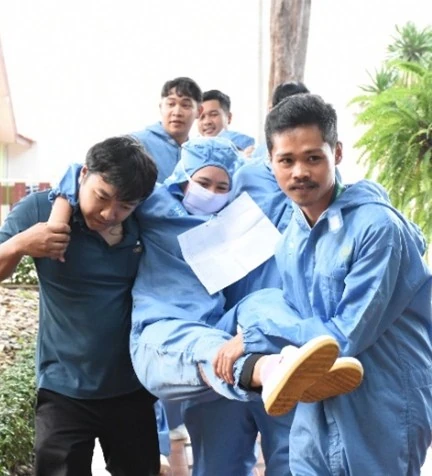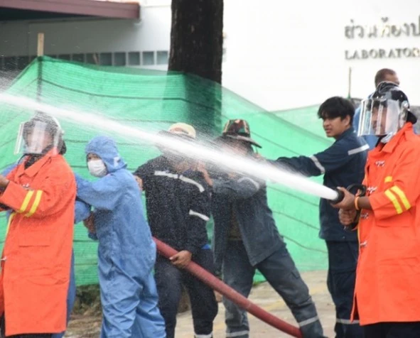 Image of fire evacuation training and emergency drill simulation in case of a boiler explosion or LPG gas leak.