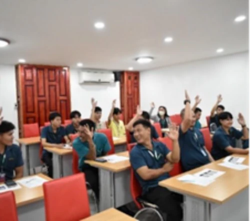 Training activities such as external contractor training, fire evacuation drills, emergency drills for boiler explosions or LPG gas leaks, chemical spill response drills, and training on the use and maintenance of electric forklifts for operators.